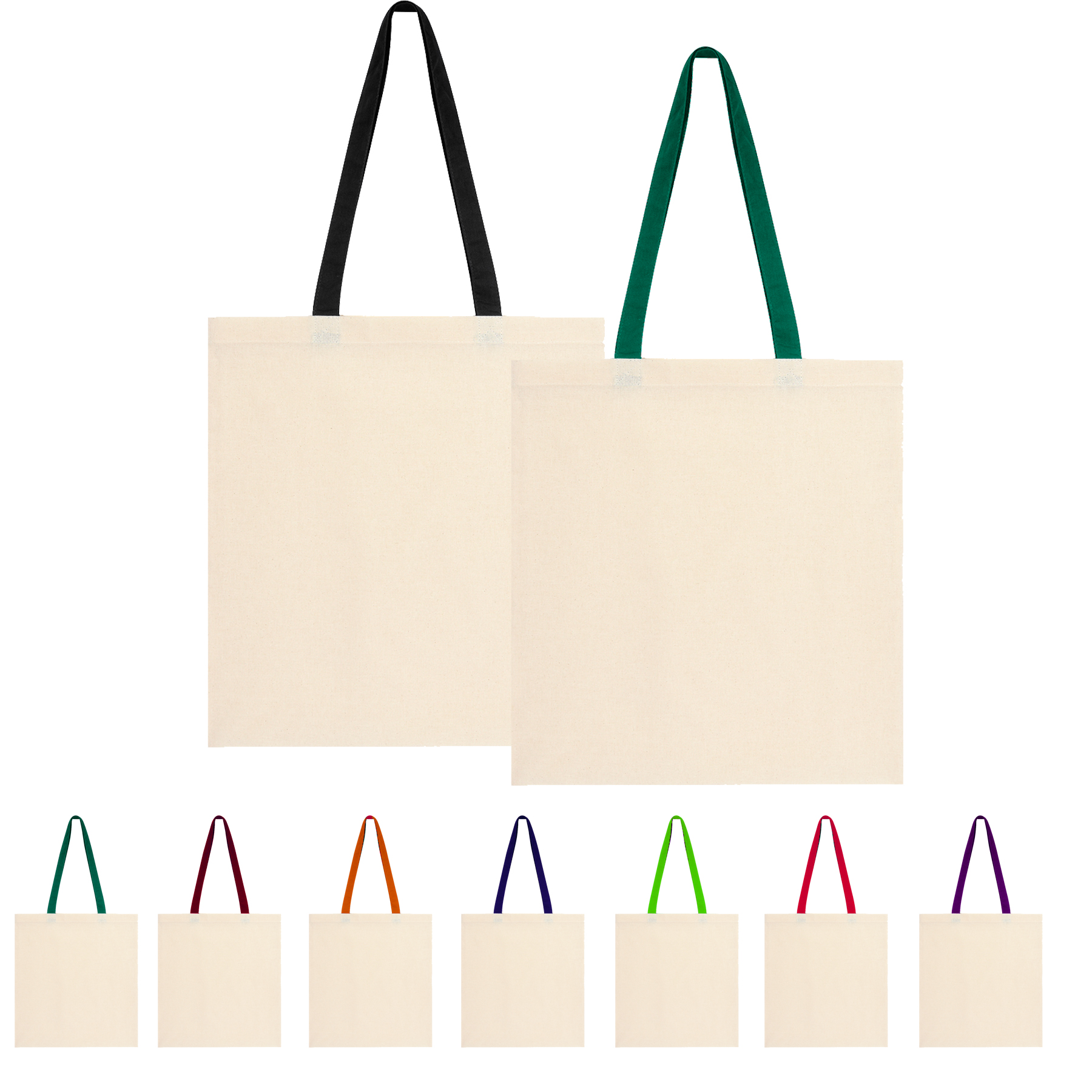 This is a lightweight, reusable tote bag made from durable 4-ounce cotton canvas fabric. These types of tote bags are popular for their eco-friendly nature, strength, and versatility. 15″ W x 16 1/2″ L