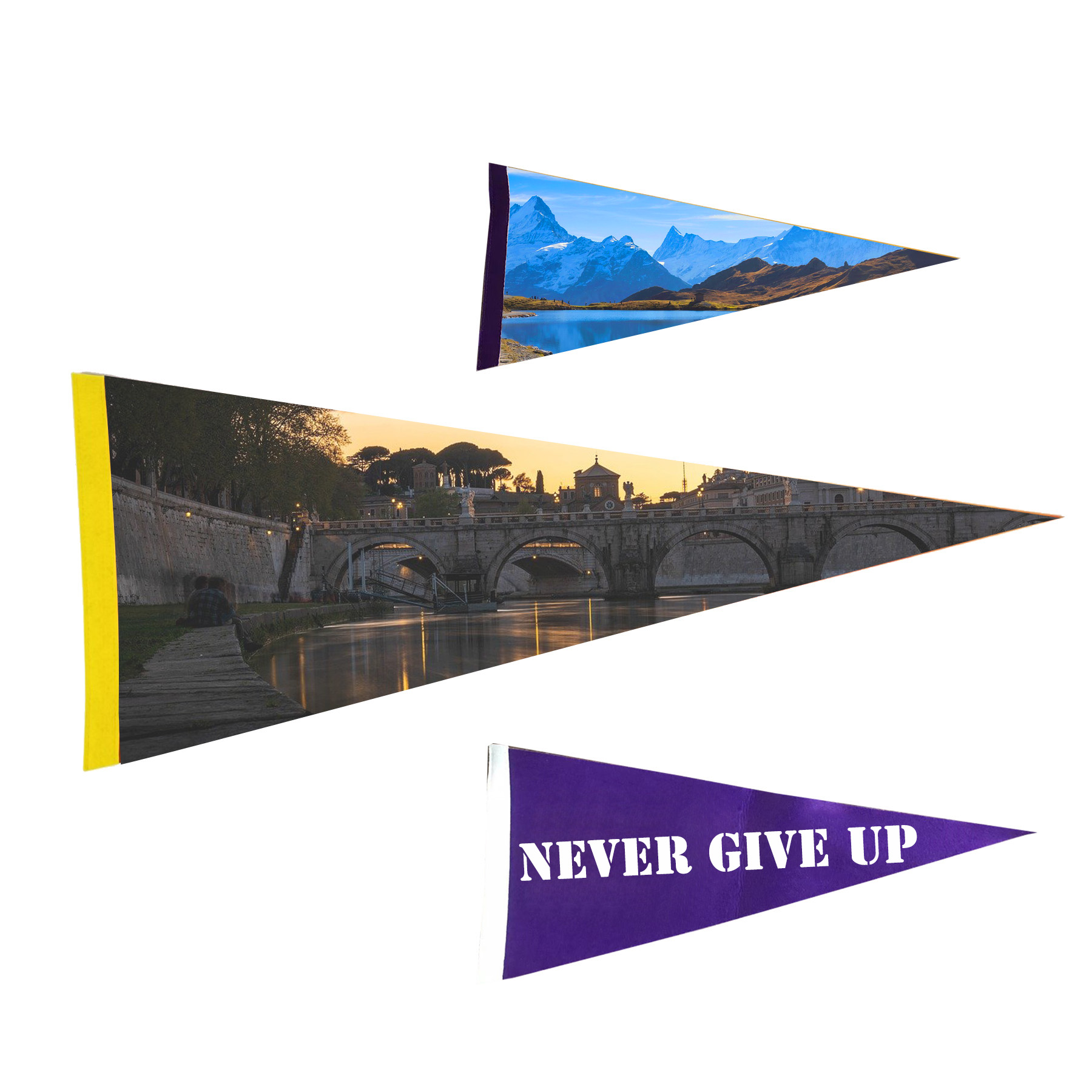 This pennant is made of soft felt with single side digital and dye sublimation printing processes to create a clear, eye-catching effect. They are classic, fan-favorite, promotional products. The soft felt of this material makes packaging, kitting, and mailing super easy for both you and the recipient. Complies with Prop 65. 8” H x 18” W