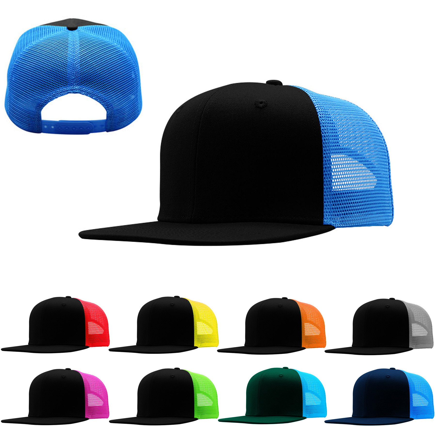 The hats are made of 100% twill cotton fabric with polyester mesh back, sturdy, durable, and non-fading. Structured firm front panel design provides a sturdy and defined shape for a polished look. The breathable mesh back design ensures a more comfortable wear. The caps have a snap closure design at the back that can easily be adjusted. One size fits most people. Adult: 23″ L