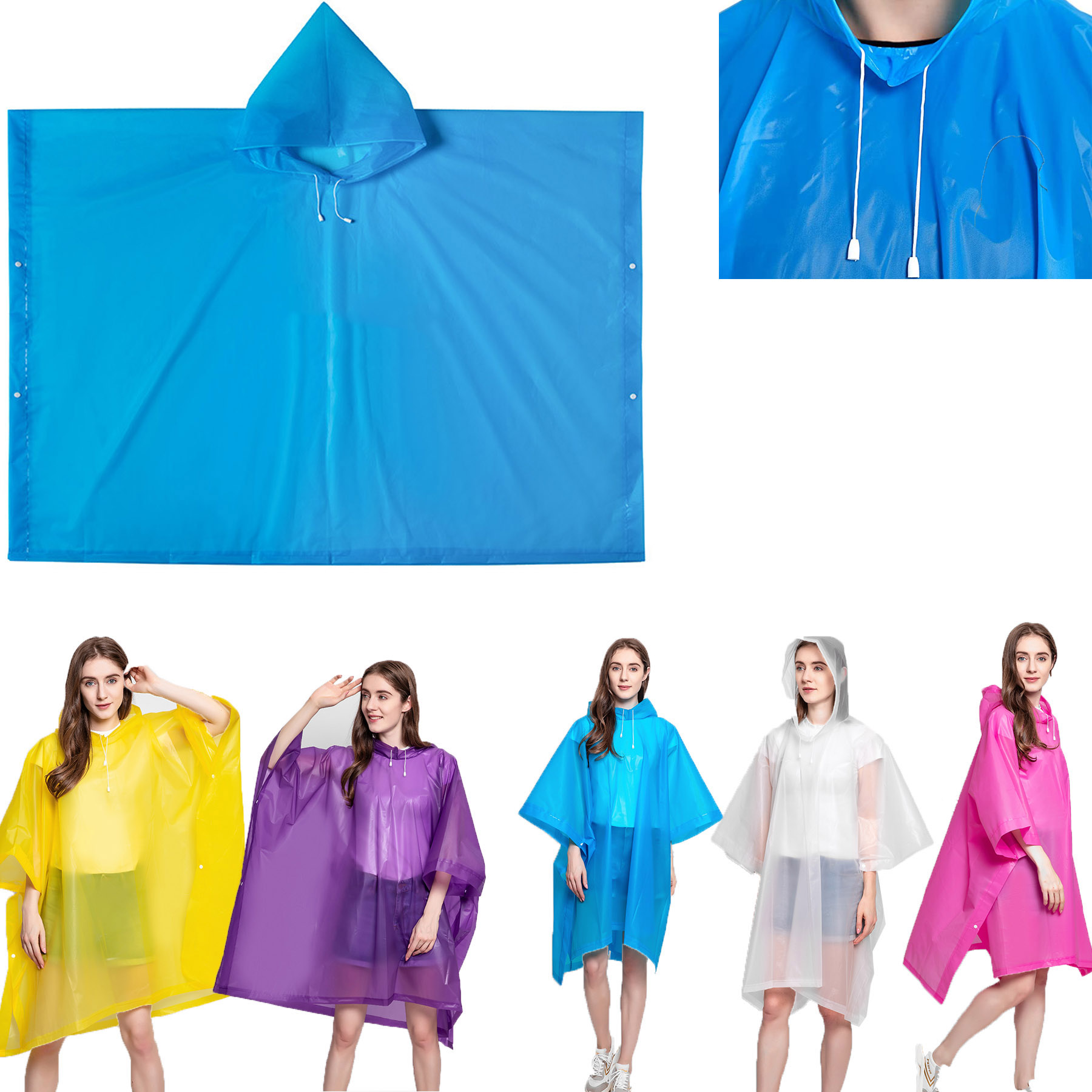 Eva Adult Reusable Rain Poncho With Drawstring Hood