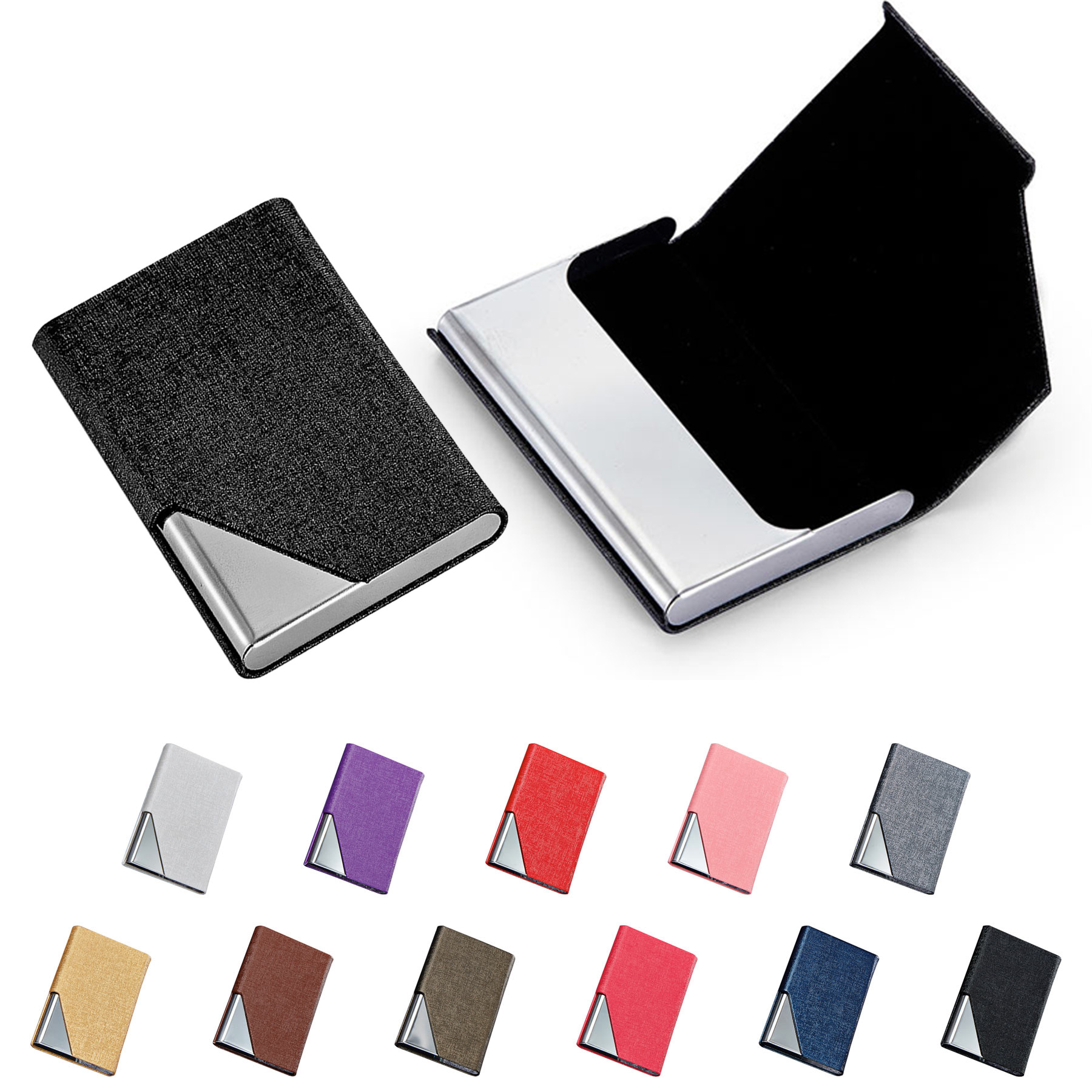 This business card holder is wrapped in textured PU leather for a stylish design. The internal box is made of stainless steel and can hold 15 to 25 business cards. The flip cover is equipped with a magnet to prevent the business card from scattering. You logo can be laser engraved on the bottom right corner of the business card holder, making it a good choice for business trips and office work. 3 3/4″ L x 2 1/2″ W x 3/4″ H